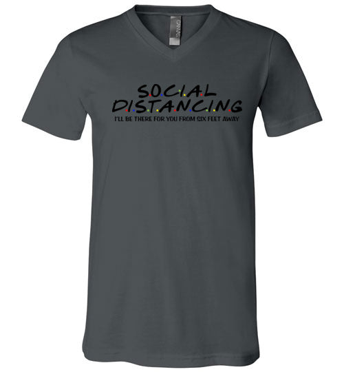 Canvas Brand Seamless V- neck and shoulders. Double-needle sleeve and bottom hems. Quarter-turned to eliminate center crease.