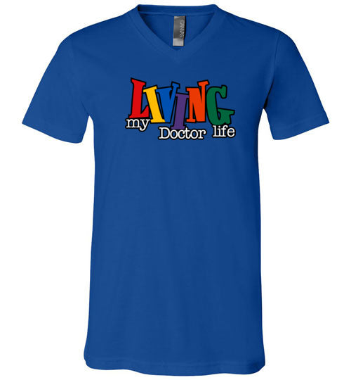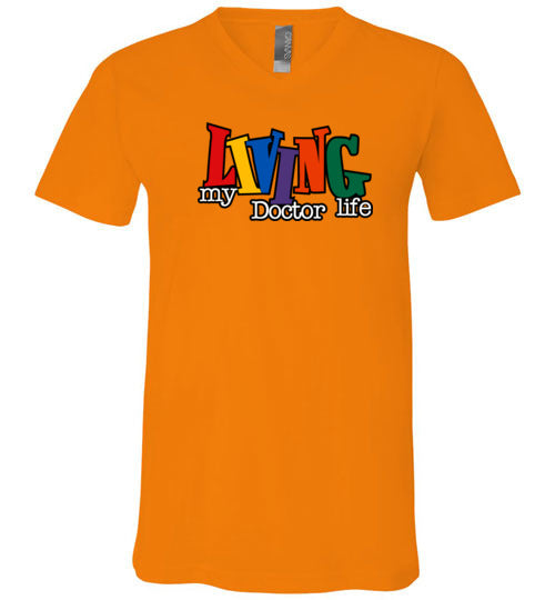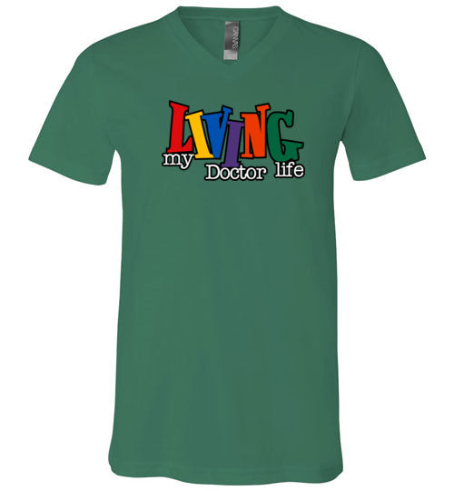 Seamless collar, V-neck. Double-needle sleeve and bottom hems. Quarter-turned to eliminate center crease.