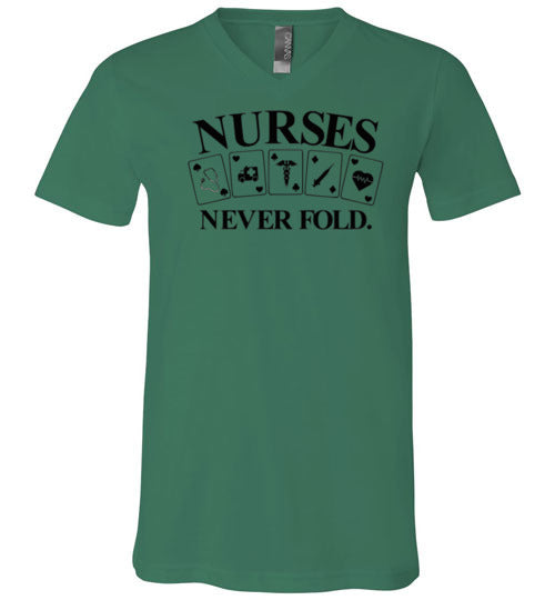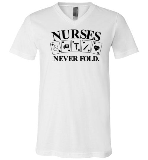 Nurses Never Fold V-Neck T-Shirt